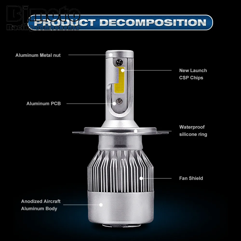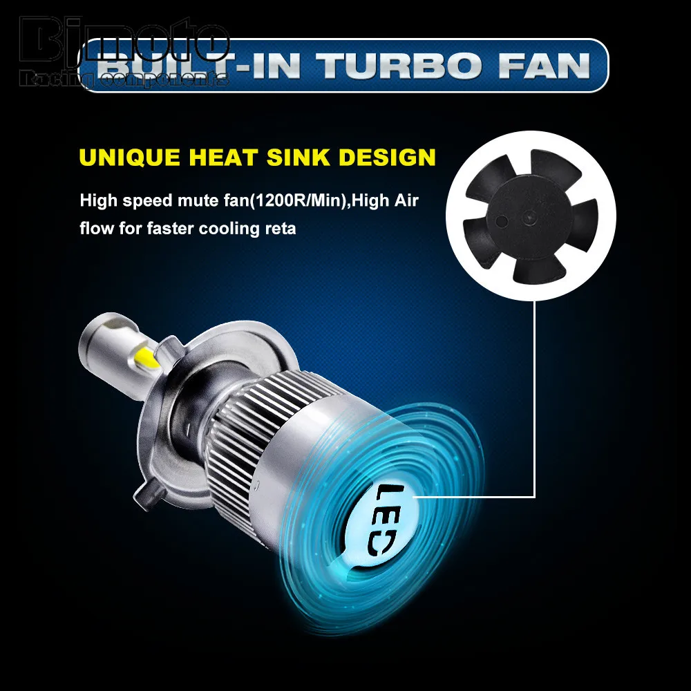 HOT Sale BJMOTO Pair C9 H4 H11 H13 H1 H7 72W 6000K/White Replacement Running Lights Fog Headlight Driving Bu